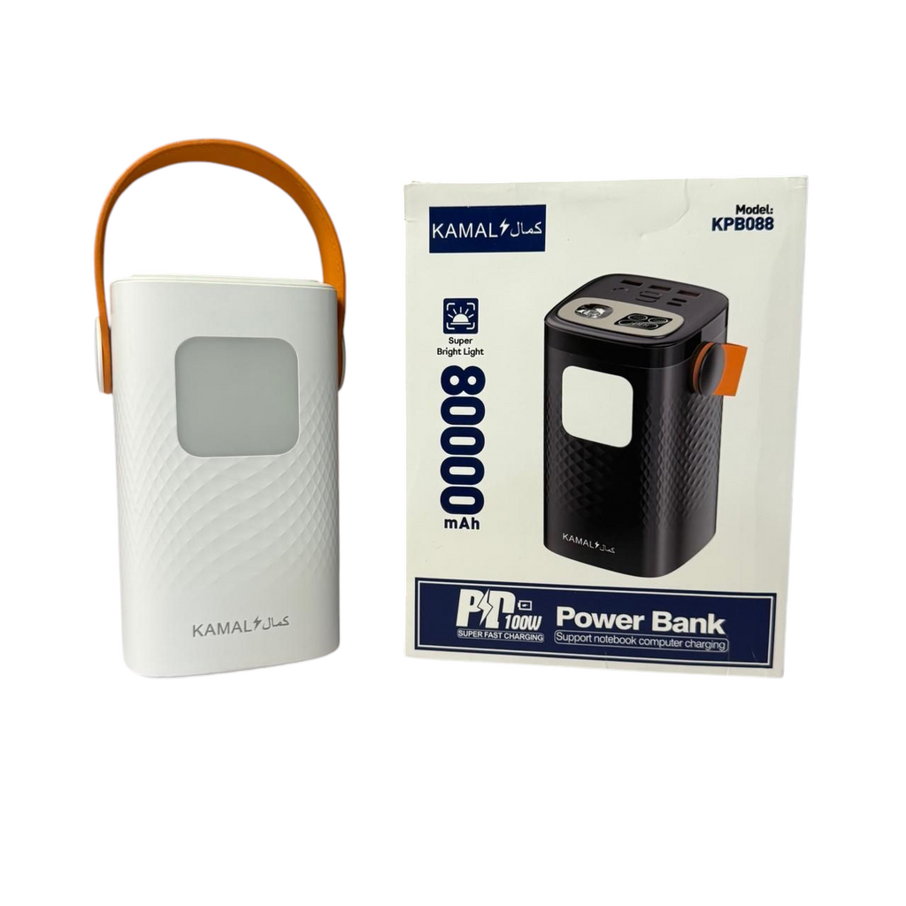 The KAMAL KPB088 Portable Power Station ⚡ comes with a massive 80,000mAh capacity, perfect for keeping your phone, tablet, and gadgets powered anywhere. It features a bright built-in LED light 🔦 and a premium leather strap 🎒 for easy carrying during travel, camping, or load-shedding.